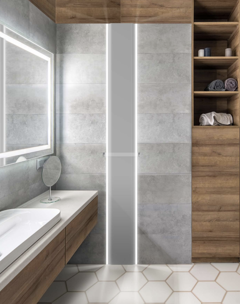 Datorită integrării sistemului de iluminare LED, cu intensitate reglabilă, VERTICAL devine o adevărată panglică de lumină , capabilă să aprindă simțul și să ofere multiple sugestii perceptive .